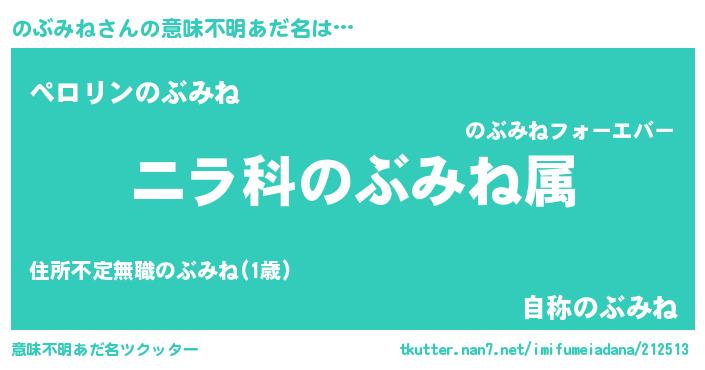 | 男性向けラノベタイトル風あだ名 | 『のぶみね~年齢イコール彼女いない歴の魔法使い~』 |