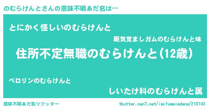 | 男性向けラノベタイトル風あだ名 | 『魔弾の王とのむらけんと』 |