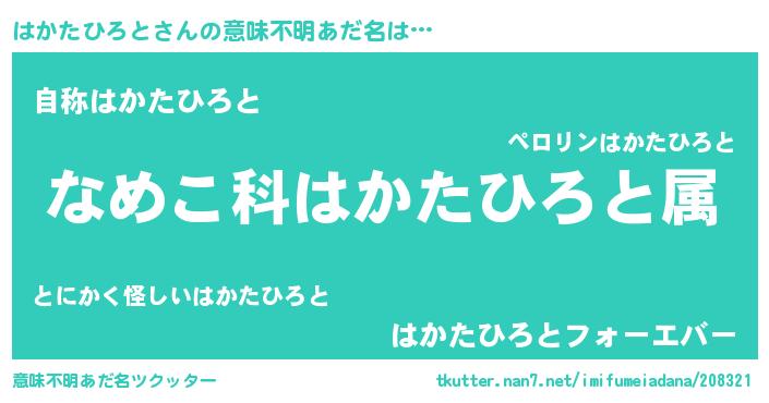 | 男性向けラノベタイトル風あだ名 | 『転生したらはかたひろとだった件』 |
