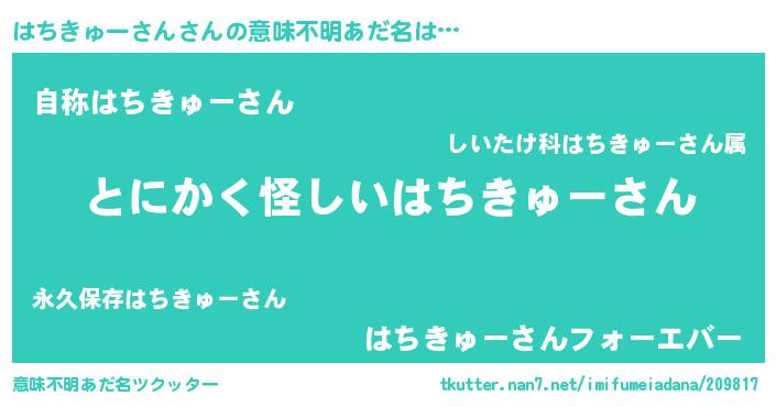 | ヘコむあだ名 | 『はちっちょ』『つくし』『はちにー』 |