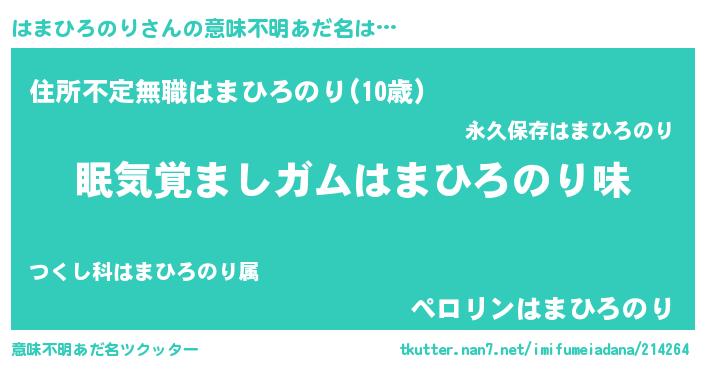 | 男性向けラノベタイトル風あだ名 | 『おまえをオタクにしてやるから、俺をはまひろのりにしてくれ! 』 |