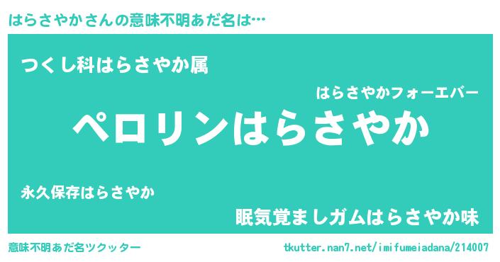 | 男性向けラノベタイトル風あだ名 | 『ハラサヤカアートオンライン』 |
