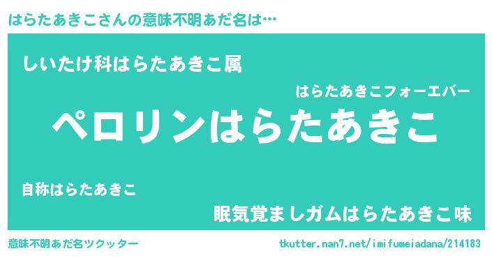 | 肩書あだ名 | 『はらたあきこCEO』『はらたあきこ少佐』 |