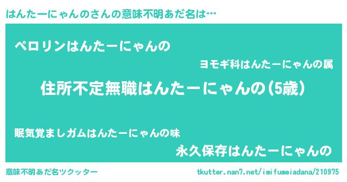 | ヘコむあだ名 | 『はんにー』『はんたーにゃんの(笑)』 |