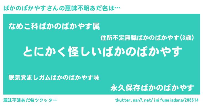 | 欧米人風あだ名 | 『ウサインばかのばかやす』 |