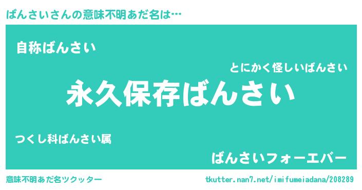 | ヒーロー風カッコイイあだ名 | 『ネオバンサイ』『最強戦士バンサイ』 |