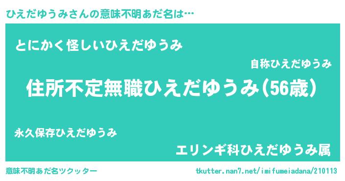 | 男性向けラノベタイトル風あだ名 | 『この素晴らしい世界にひえだゆうみを!』 |