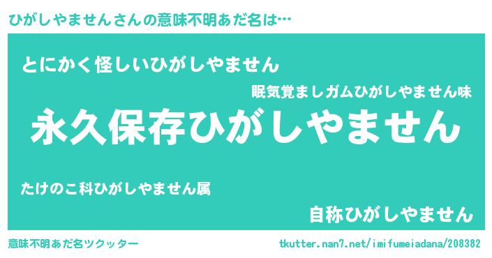| 胡散臭い通販商品みたいなあだ名 | 『来世でも幸せになれる健康食品…その名も「ひがしやません」』 |