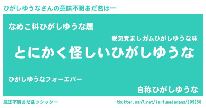 | 女子向けラノベタイトル風あだ名 | 『ひがしゆうなの卵を拾いまして』 |