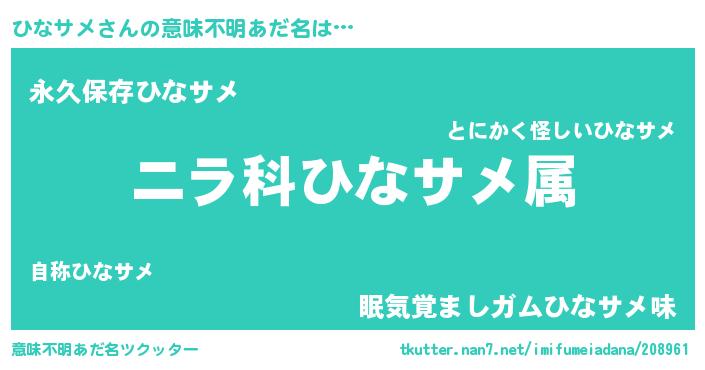 | ポケモン風あだ名 | 『ヒナキング』『ゼニヒナ』 |