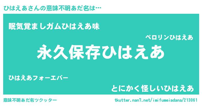 | 胡散臭い通販商品みたいなあだ名 | 『絶対に幸福をもたらす水素水…その名も「ひはえあ」』 |