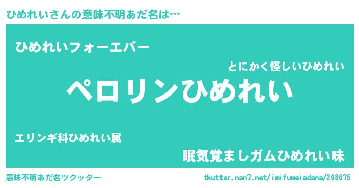 | 欧米人風あだ名 | 『マイケルひめれい』『ダニエルひめれい』 |