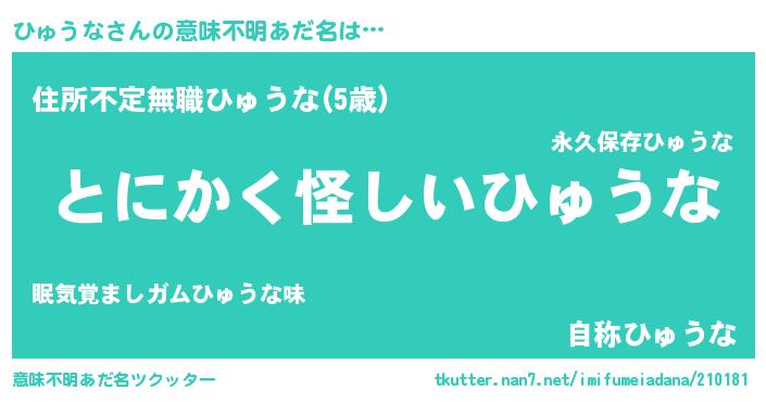 | 女子向けラノベタイトル風あだ名 | 『ひゅうなは平凡を望む』 |