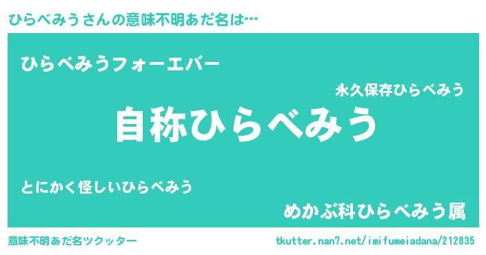| 女子向けラノベタイトル風あだ名 | 『ひらべみうなんてお断りですっ。』 |