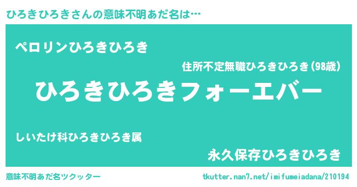 | 男性向けラノベタイトル風あだ名 | 『やはりひろきひろきの青春ラブコメはまちがっている 』 |