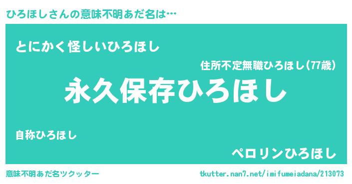 | 男性向けラノベタイトル風あだ名 | 『ひろほしという概念が存在しない退屈な世界 』 |