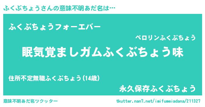 | ヒーロー風カッコイイあだ名 | 『慈愛の使者ふくぶちょう』 |