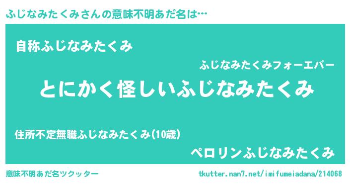 | ポケモン風あだ名 | 『ヒフジナミタクミ』『フジセウス』 |