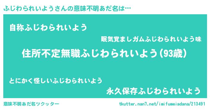 | 料理風あだ名 | 『ふじわられいようのカルパッチョ風』 |
