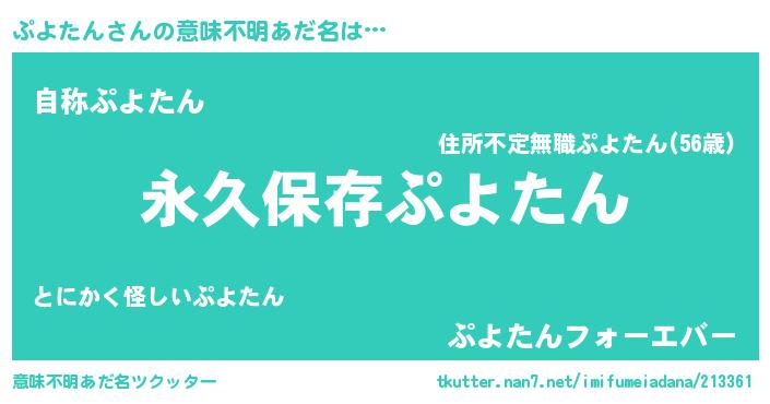 | 欧米人風あだ名 | 『ぷよたん・ステッグマイヤー』 |