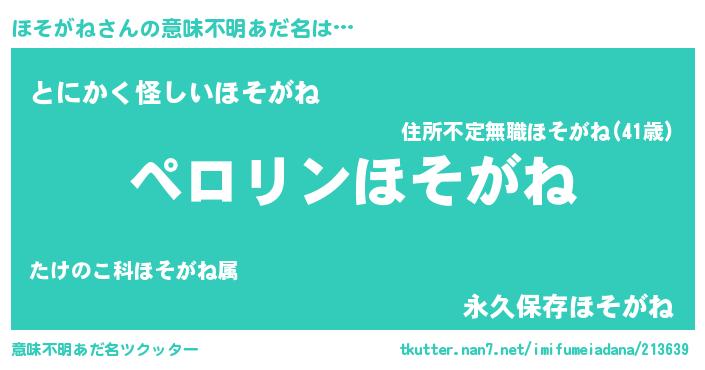 | 胡散臭い通販商品みたいなあだ名 | 『億万長者になれるブレスレット…その名も「ほそがね」』 |