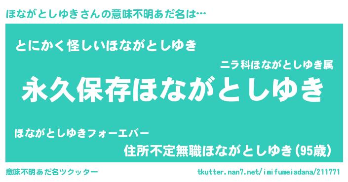 | 伝説のあだ名 | 『古文書に記された勇者ほながとしゆき』 |