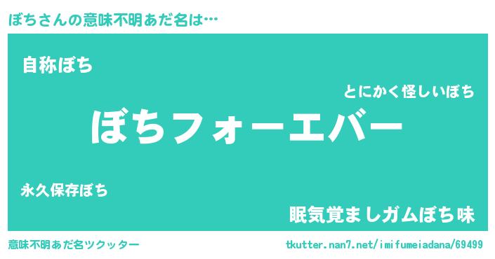 | 女子向けラノベタイトル風あだ名 | 『ぼちの雑貨屋さん』『闇のぼち』 |