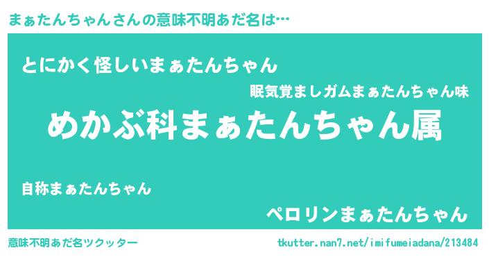| 胡散臭い通販商品みたいなあだ名 | 『信頼と実績のサプリメント…その名も「まぁたんちゃん」』 |