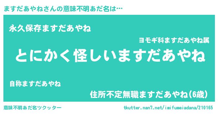 | 欧米人風あだ名 | 『ますだあやね・ステッグマイヤー』 |