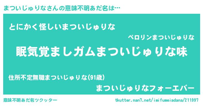| 胡散臭い通販商品みたいなあだ名 | 『モンドセレクションを受賞した隕石のかけら…その名も「まついじゅりな」』 |