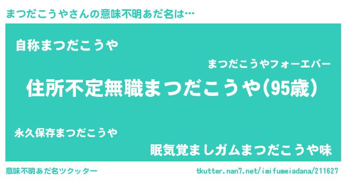 | 欧米人風あだ名 | 『まつだこうや・ステッグマイヤー』 |