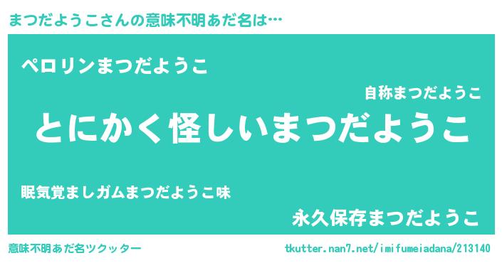 | 男性向けラノベタイトル風あだ名 | 『まつだようこの嫁は女の子じゃないと思った?』 |