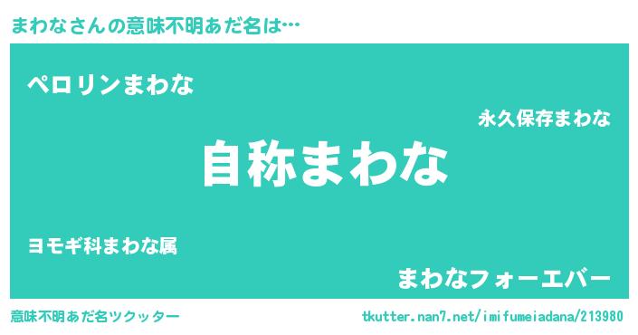 | 男性向けラノベタイトル風あだ名 | 『Re:まわなから始める異世界生活』 |