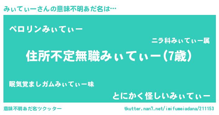 | ヘコむあだ名 | 『みぃにー』『みぃぷりん』 |