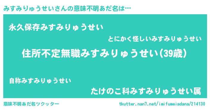 | ヘコむあだ名 | 『みすみりゅうせい(笑)』『みす太郎』 |