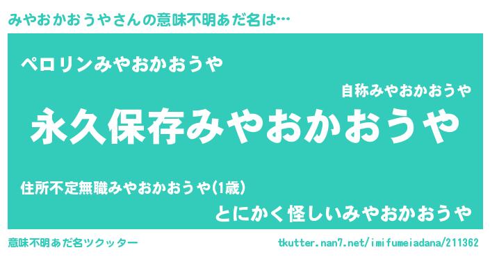 | ヘコむあだ名 | 『みやおかおうや(遠い目)』『みやにー』 |