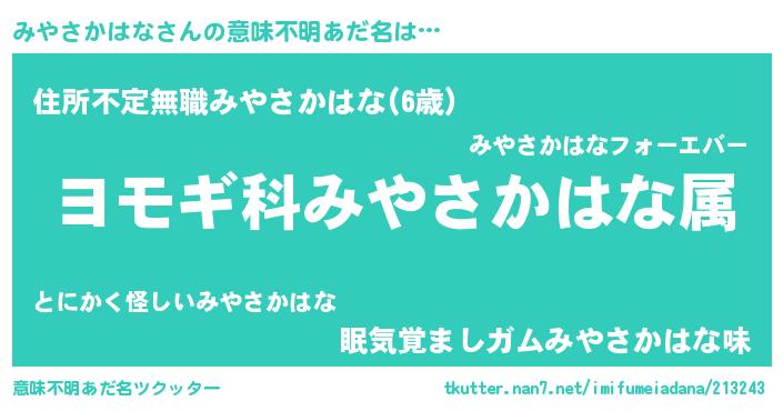 | ヘコむあだ名 | 『レバニラ』『みやを』『みやふぇ~』 |