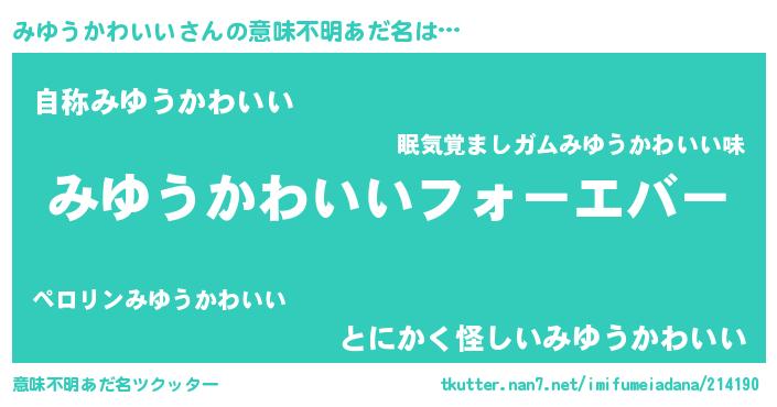| ファンタジー風あだ名 | 『エターナルミユウカワイイー』 |
