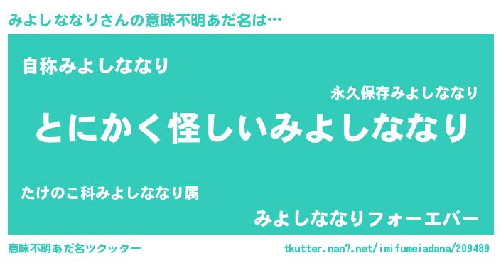 | 胡散臭い通販商品みたいなあだ名 | 『信頼と実績のサプリメント…その名も「みよしななり」』 |