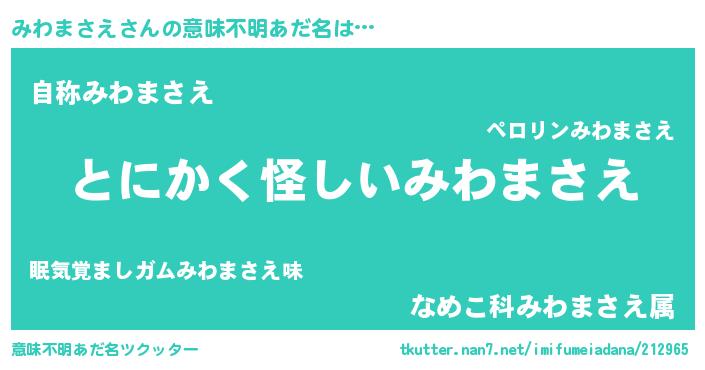 | ポケモン風あだ名 | 『ヒミワマサエ』『ミワセウス』 |