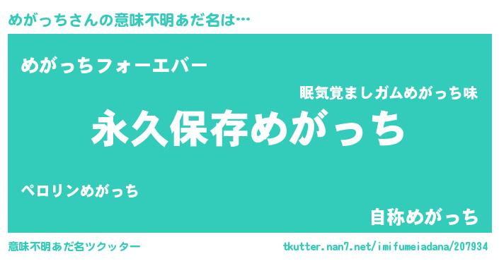 | 胡散臭い通販商品みたいなあだ名 | 『絶対に幸福をもたらす水素水…その名も「めがっち」』 |