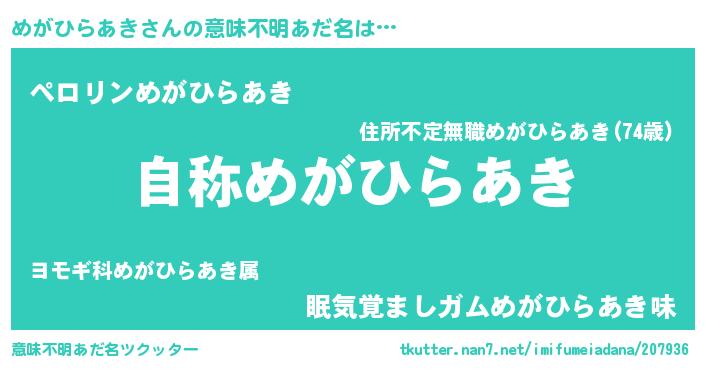 | 胡散臭い通販商品みたいなあだ名 | 『ガンによく効く高麗人参…その名も「めがひらあき」』 |