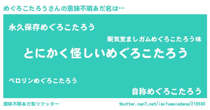 | 男性向けラノベタイトル風あだ名 | 『ダンジョンにめぐろこたろうを求めるのは間違っているだろうか』 |