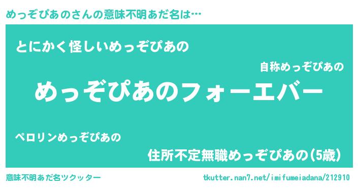 | 男性向けラノベタイトル風あだ名 | 『やはりめっぞぴあのの青春ラブコメはまちがっている 』 |
