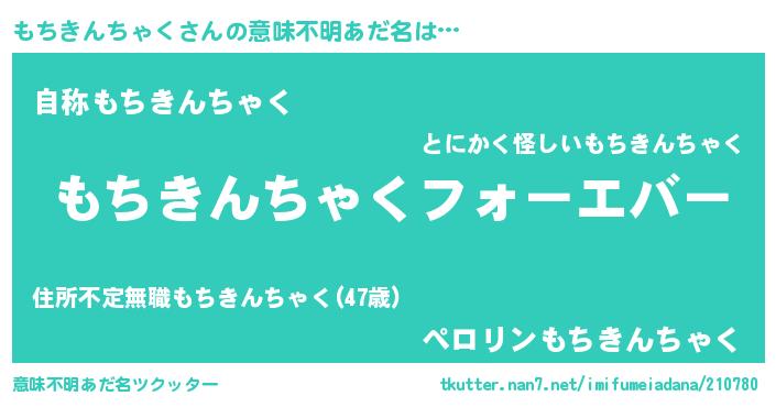 | 女子向けラノベタイトル風あだ名 | 『もちきんちゃくの雑貨屋さん』 |