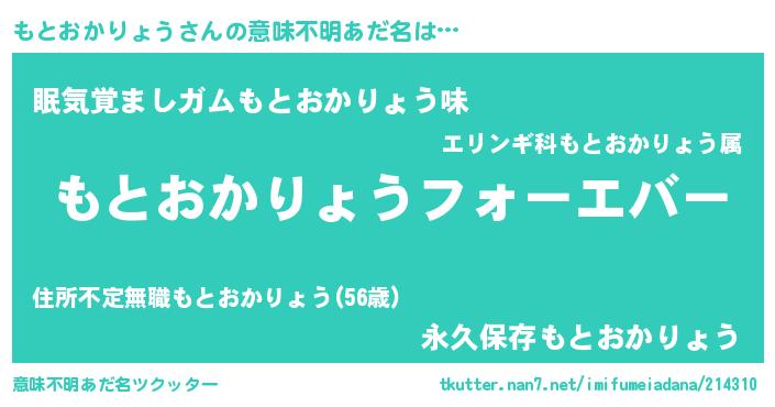 | 欧米人風あだ名 | 『もとおかりょうクリステル』 |
