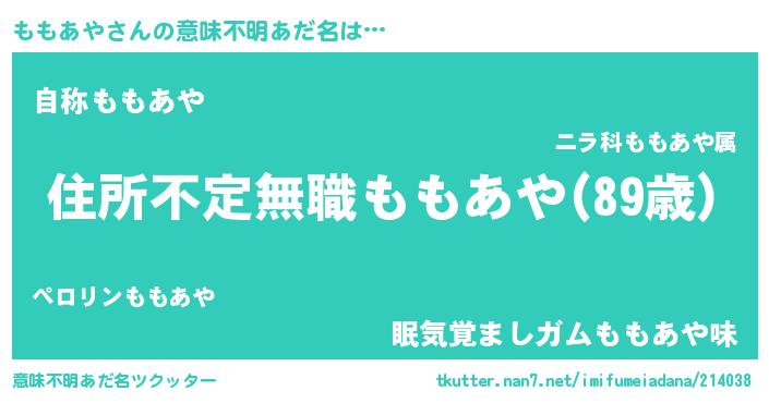 | 男性向けラノベタイトル風あだ名 | 『この素晴らしい世界にももあやを!』 |
