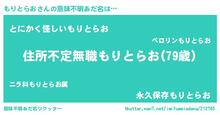 | 料理風あだ名 | 『もりとらおのカルパッチョ風』 |