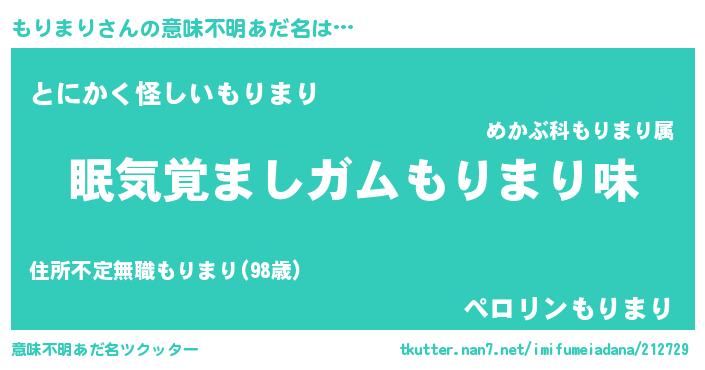 | ヘコむあだ名 | 『もりっぺ』『もりっふぃ~』『豆乳』 |