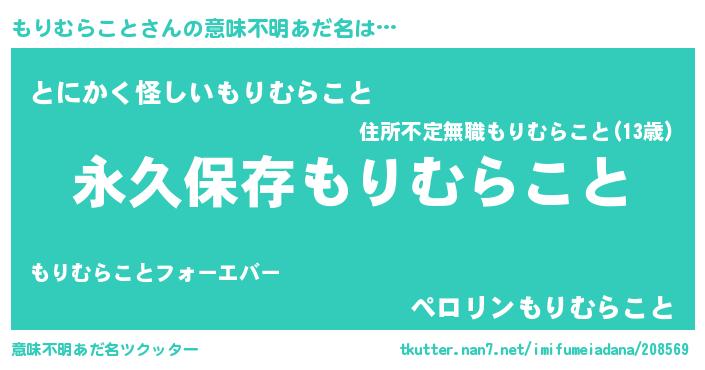 | 男性向けラノベタイトル風あだ名 | 『もりむらことという概念が存在しない退屈な世界 』 |